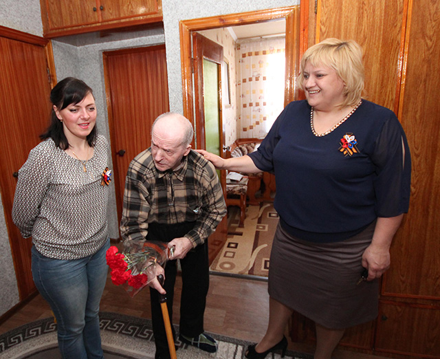 Сотрудники отдела социального развития, персонала развезли помощь и подарки, цветы и открытки, поздравили ветеранов и вдов с Днём Победы.